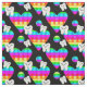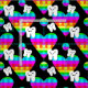 design odontológico colorido, dentes sorridentes, corações arco-íris e bolas de disco.