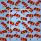 Um paraquedas vibrante em tons negros de vermelho, laranja e amarelo se desprende graciosamente, com um pequeno skydiver suspenso abaixo, capturando a emoção da queda livre. O padrão se repete dinamicamente através do tecido, criando um cheio lúdico e aventureiro de energia e movimento.