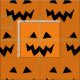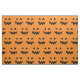 Tecido do Dia das Bruxas com teste padrão cinzelado da cara da abóbora. Matéria têxtil assustador do impressão da lanterna de Jack o. A laranja e o preto projetam com cinzeladura principal da abóbora. Fontes e acessórios do partido do divertimento DIY para adultos e miúdos. Faça seu próprio equipamento do traje.
