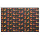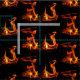 Este design do tecido das belas artes descreve um teste padrão abstrato de repetição da energia do fogo em um fogão ardente de madeira. A laranja, o ouro e as chamas amarelas aparecem como caráteres alegres da dança. São ajustados fora por um fundo preto.