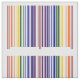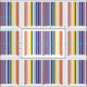 O tecido geométrico à moda caracteriza um design do código de barras com os dois arcos-íris feitos dos pares de listras coloridas que correspondem aos números do UPC. Obtendo meu geek sobre, os números correspondem às letras no "arco-íris" para fazer um arco-íris dobro. Desde que os códigos de barras são somente 12 números por muito tempo, eu deixo o "r" ser representado pelo começo vermelho e pelas listras médias. A seqüência começa na esquerda com vermelho, o alaranjado, o amarelo, o verde, o azul, índigo, e violeta. Duas listras do saque vermelho como um divisor no meio e então as cores vão da violeta de volta ao vermelho para um olhar equilibrado.