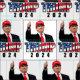 Trump 2024, o presidente Donald trump vestindo gravata vermelha e chapéu clássicos, dando aos polegares positivos o movimento de mão. Celebrar o nosso Presidente ou criar algo para vestir a uma manifestação de campanha com este festivo tecido de tecido Trump 2024 para costurar e artesanatos,