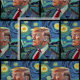 Tecido Donald Trump Starry Night Van Gogh Art Style 2024