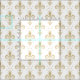 Tecido Dourado padrão uniforme de pulgas-de-lis em branco