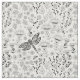 Dragonfly e várias flores e folhas. Padrão do vetor de porta em preto e branco.