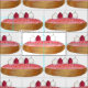 O design apresenta uma ilustração original de um eclair de massa de choux, revestido com fondant cor-de-rosa, framboesas e nádegas. Ideal para o seu padeiro favorito, comida, pastelaria ou amante da pastelaria francesa.