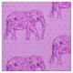 Imagens digitais mistas de um elefante contra um tecido de fundo arabesco - tons de lavanda, orquídea e roxo ametista