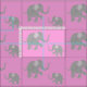 Este tecido bonito caracteriza um teste padrão decorativo doce de elefantes pequenos cinzentos bonitos com os troncos playfully levantados e de pés contra um fundo cor-de-rosa.
