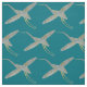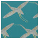 Elegante tecido em teal impresso com padrão repetitivo de aves de guindaste aquáticas em tons de cinza e amarelo mostarda, inspirado na arte tradicional japonesa ou no estilo Chinoiserie. Perfeito para adicionar um toque colorido à decoração da sua casa.