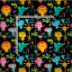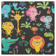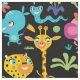 Bela e colorida tecido de viveiro de animais africanos de safari divertido para crianças, decoração de quartos e trabalhos de artesanato. O padrão inclui girafa engraçada fofa, zebra, tigre, leão, macaco, elefante, crocodilo, cobra, pássaros, lagarto, etc.