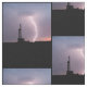 Aprecie este design colorido do tecido de um parafuso de relâmpago em um céu roxo é o contexto para esta silhueta do equipamento de perfuração para a exploração do petróleo.