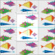 Arte de peixe cômoda em tons de azul claro verde cor-de-rosa amarelo e roxo