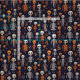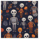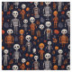 Tecido Esqueletos e abóboras à noite