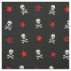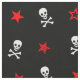 O crânio e as estrelas vermelhas sobre fundo preto.