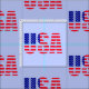Tecido EUA Flag Red White Blue sobre fundo azul claro