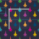 Um padrão bonito de águias em greve coloridas no arco-íris em azul marinho escuro é uma maneira fofa e divertida de incluir aviões de combate em seus projetos de artesanato.