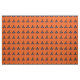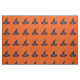 Este tecido personalizado do pátio tem uma imagem contínua de uma bruxa preta com uma faixa laranja e uma fivela prateada e estrelas laranja numa laranja com luz amarela. Feliz Samhain está à beira dos chapéus.