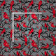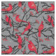 Belo tecido de cinza, com moldagem manual de aves cardeais, desenhadas à mão, em galhos de árvores, com bagas vermelhas de inverno
