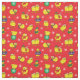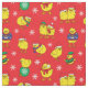 Tecido de Natal festivo com um padrão de adoráveis pintinhos de bebês vestindo saltadores e chapéus de natal. Crianças vão adorar este tecido vermelho e amarelo com padrão de frango