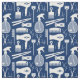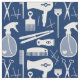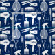 Tecido Ferramentas de Salão de Cabelo Azul e Branco Retro