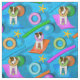 Este divertido e colorido tecido Jack Russell/Parson Russell apresenta quatro terrores ilustrados, cada um parado num tapete flutuante numa piscina de natação cristalina com uma bola de tênis aos seus pés e vestindo um anel de natação colorido à volta do pescoço - os cães têm variadas marcas na cabeça e no corpo preto e marrom, e cada um está inclinando a cabeça balançosamente - os cães estão rodeados por vários brinquedos coloridos de piscinas coloridos, e vocês podem ver as sombras na parte inferior da piscina - padrão da piscina Jack Russell Terriers © katz_d_zynes 2019 | você pode gostar de uma nova versão deste padrão onde os cães não estão vestindo anéis de natação | veja aqui https://www.zazzle.com/another_parson_jack_russell_terrier_pool_party_fabric-256250386588949971