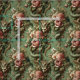 Uma figura de serpentina enrola através de um buquê de peônias lavas e orquídeas delicadas, vestida em decadência em tons de menta. Com chifres coroados e garras enfeitadas em flores, esta besta veste sua elegância como armadura. Ideal para estofamento, secura ou roupas que fundem grandeza monstruosa com encanto opulente.