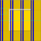 Este design apresenta um padrão de listras com cores como azul e amarelo.