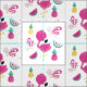 Tecido Flamingo rosa com padrão Fruta tropical