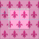 Tecido de um padrão clássico de pulgas de lis (fleur-de-lis) em fuchsia cor-de-rosa profundo sobre fundo cor-de-rosa pastel
