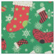 Este tecido de Natal bonito apresenta um padrão de meias de Natal vermelhas, verdes e pretas sobre um fundo de verde com flocos de neve brancos. Use para projetos de roupa ou artesanato de feriado. Desenhada pela artista Susan Coffey.