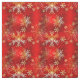 Tecido Flocos de neve brancos e Dourados no fundo vermelh
