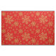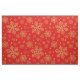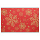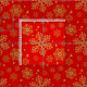 Design de Natal com flocos de neve ouros e estrelas em fundo vermelho