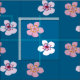 Flor de cereja e ameixa florescem no fundo azul-de-coleira tecido oriental