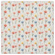 Flores azuis, amarelas, cor de pêssego, e laranja-vermelha flutuam através deste tecido alegre e primavera. Perfeito para roupas e colchas.
