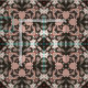 tecido impresso com delicadas posições e flores de deco de arte vinda em preto, pêssego e coral.