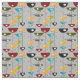 O padrão de meia-lua moderno do Médio século se assemelha a um padrão floral em cores de vermelho escuro, preto, ouro, verde-azul e abacate sobre um fundo de cinza leve com linhas finas.