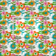 Flores feitas nas cores ousadas e designs simples da arte gráfica de 1960.