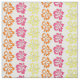 O tecido apresenta uma ilustração original de flores tropicais, cor-de-rosa e laranja, em um fundo branco.