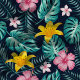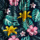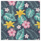 Tecido Flores De Marinho Tropical E De Hibisco Rosa Flora