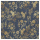 Tecido Flores Douradas Elegantes Botânicas Azuis