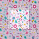 Tecido Flores Retro Aves e Abelhas em Fundo Rosa