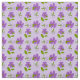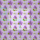 Ilustração com um padrão floral contínuo de flores roxas e brancas complementadas por folhas verdes sobre um fundo lavanda, evocando uma atmosfera alegre e fresca, perfeita para designs e decorações.