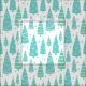 Um padrão de inverno de árvores de Natal verdes e azuis pastel ilustradas, organizadas em uma floresta de árvores festivas sem fim. Eles são decorados com terra firme e estrelas.