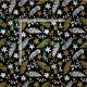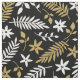 Este tecido de Natal moderno apresenta um simples padrão botânico de folhas brancas e douradas e flores em fundo preto. Use para roupa de feriado, decoração doméstica ou projetos de artesanato. De nossos corações aos seus, Felizes Feriados!