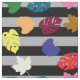 Formas Decorativas Coloridas De Abstrato Folha De Folha Em tecidos De Design De Cinzas De Cinza E Stripes Negras. Tecidos Disponíveis em Algodão Composto, Algodão Pima, Algodão Algodão, Algodão, Poplina De Poliéster, Tecido De Poliéster, Linen De Marfim E Linen Natural