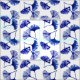 Tecido Folhas de gingko azuis e brancas