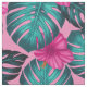 Tecido Folhas de Monstera e Hibiscus Teal e Rosa a Rosa