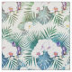 Orquídeas elegantes, exóticas e folhagem tropical sobre fundo branco, floral botânico brilhante, folhas de palma, folhas de monstera, folhagem de abacaxi, design havaiano. Azul-pavão, azul-claro, laranja, verde-claro, verde-claro, amarelo, marrom, cinzas e cores brancas. Esta trendy, Na moda, boêmica, ilustração tropical é perfeita para o visto do dia a dia ou para a decoração doméstica. Um Verão, sol, praia, feminina, glamour, imagem única.