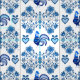 Tecido Folk Rooster/Cockerel/blue floral, corações de 4"