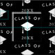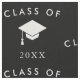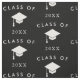 tecido preto-e-branco com um design minimalista com classe de [YEAR] e a silhueta branca de um boné de formatura.
